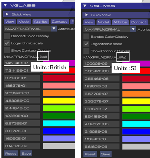 vGlass起動時は、iSysで指定した単位系に基づいて表示されます。
